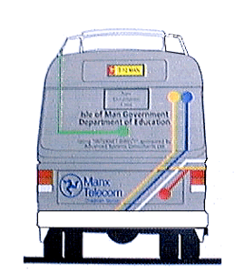 Now, the livery designed by Des Clague of the Creative Studio, Douglas, must be painstakingly applied by retired coach painter, Eric Quirk. The intricate design is shown below, and is based on ideas supplied by Manx Telecom and students of the Isle of Man College.”