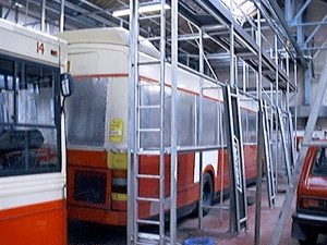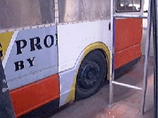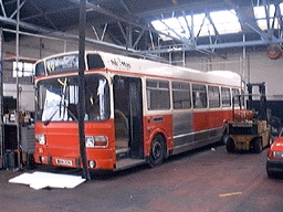 “LEFT: Computer Bus was moved on Monday 11th May [1998] to the paintshop of Man Transport's Homefield works.