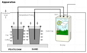 The experiment involved logging the cool- ing rate of cups of warm water, using the external temperature probes.