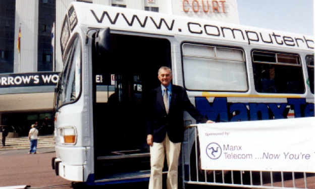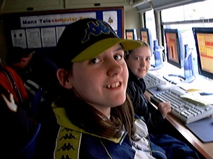 Heppell (right), from Anglia Polytechnic University’s ULTRALAB, visited the Island in February to give a talk for the DOE about teaching and learning with computers. He saw what the Island was doing with ICT in education, saw the bus and thought the combination would make an ideal base for testing a revolutionary new internet system, being developed by US communications giant Oracle