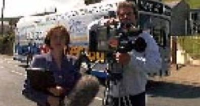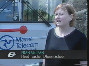 The feature was recorded the previous week outside Dhoon School and included interviews with Alex Townsend, Head Teacher Fran McClean, and Manx Telecom Managing Director Mr Chris Hall.