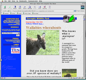 LEFT: Rob Sellors and others from Arbory School holding up printouts of their web pages during the Wildlife Park visit May 15th 1999.