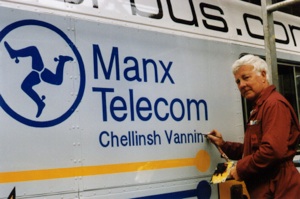 The eye-catching livery was designed by Des Clague of the Creative Studio, Douglas—based on ideas supplied by students of the Isle of Man College.