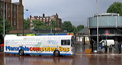 LEFT is a view of the Island’s unique computer bus outside Earls Court Underground Station in July 1999.