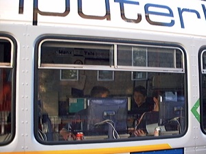 CLICK on the thumbnails below to read more about the eventful first year of the computer bus, as published in the first year review...