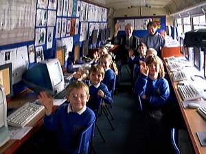 Since its launch almost a year ago, the Manx Telecomputer Bus has become a common sight around the Island, and has risen to international fame and acclaim. It has been to 37 schools (some as many as six times), and children from nursery to sixth formers have used its facilities. Over 5000 children have passed though the doors for an unforgettable experience, some spending as long as a full day on board the hi-tech transport.