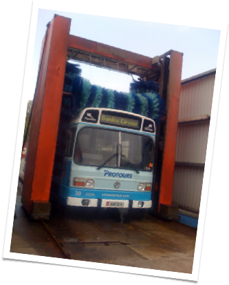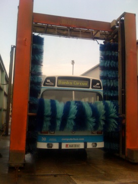 The Computerbus man regularly washes the bus by hand - but on refuelling trips takes advantage of the automatic bus washer (yes - the Department of Education pays for the service!)