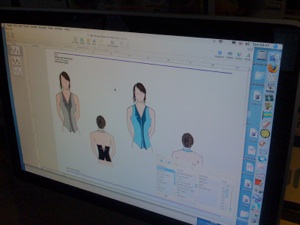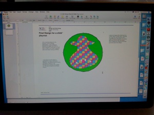 QEii High School Year 11 Textiles AQA GCSE class today put the finishing touches to their visualisations of their designs. Having earlier had their hand-drawn designs scanned in, they used the power of Adobe Photoshop Elements to clean up the drawings, select areas of colour, cut and paste to create layers, then apply embossing and other filters to create the effect of quilting. In some cases text and additional illustrations were added.
