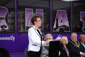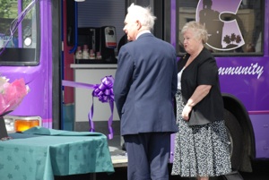 The bus was blessed by the Bishop Robert Paterson, following which Lady Haddacks, patron of Age Concern Isle of Man, cut the ribbon and officially launched the CHAT bus.